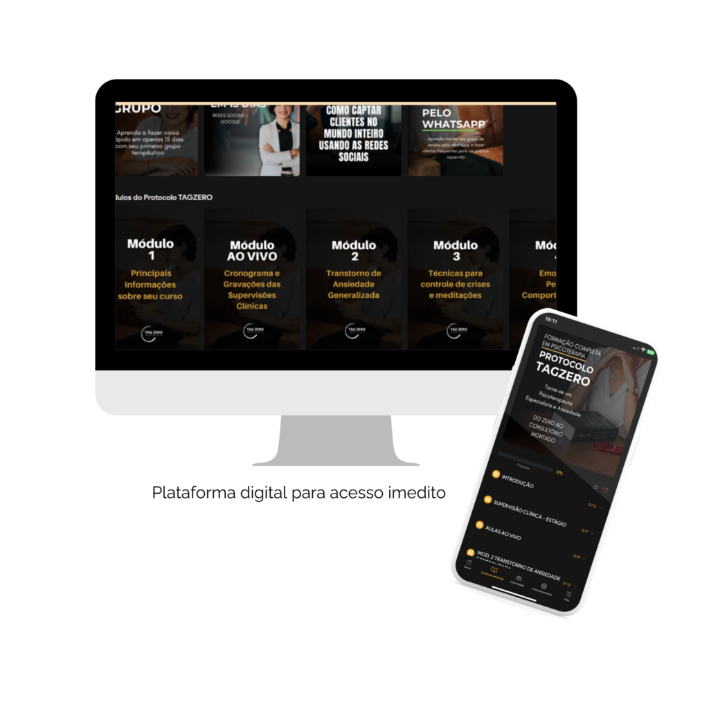 O Protocolo TAGZERO é o curso ideal para trazer resultados reais para sua prática clínica, sendo você um iniciante ou um psicólogo experiente. Você receberá um mapa completo da jornada de seu cliente para ter clareza de que está no caminho certo e isso te possibilitará atingir ganhos financeiros acima dos 10k mensais: